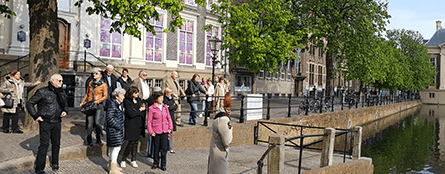 Der Bus bringt uns ins Zentrum von Den Haag, denn nun steht eine Stadtbesichtigung an, die Johanna und Wolff selbst übernehmen, weil sie 14 Jahre in Den Haag gelebt haben. Und wer könnte uns da besser führen und die Plätze und Gebäude mit eigenem Wissen und Erinnerungen präsentieren.