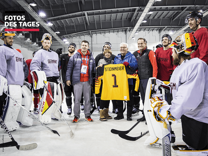 So beeindruckte der Besuch des Bundespräsidenten Frank-Walter Steinmeyer die Spieler der Deutschen Eishockeymannschaft bei seinem Besuch im Deutschen Haus. Am letzten Wettkampftag bei den Olympischen Spielen gab es für Deutschland noch drei Medaillen. Gold und Silber im Viererbob und Silber für das deutsche Eishockey-Team. Nach dem fulminanten zweiten Platz im Entscheidungsspiel und der Erringung der Olympischen Silbermedaille gab es dann auch die wohlverdiente Gratulation des Bundespräsidenten per digitalem Meeting.
