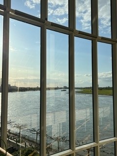 Baujahr 1988 und die Kreisform als architektonische Grundidee, die immer wiederkommt und das ganz Gebäude prägt. Diese Charakteristik steht nicht zuletzt für die Offenheit, mit der der Landtag ein Herz der Demokratie darstellen möchte. Großflächige Fensterfronten sorgen für ein helles und großzügiges Inneres und verbinden optisch die Bürgerhalle im Erdgeschoss mit dem Rheinufer. Und der Plenarsaal, zweifellos der politische Mittelpunkt des gesamten Hauses, hat ebenfalls eine Kreisform und die angrenzende Wandelhalle im 1. Obergeschoss versteht sich als ein Ort der Begegnung. Auch die Kunstwerke, die hier hängen, sind erwähnenswert und unterstreichen den modernen Gesamtcharakter des Baus, während die Galerie der Ministerpräsidenten seit Gründung des Landes NRW zu einem historischen Rückblick einlädt.