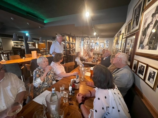 Wir wurden von Herrn Helmut Friedberg sachkundig und auch unterhaltsam durch diese einmalige Kapelle geführt. Danach trafen wir uns ein zweites mal an diesem Tag, diesmal an einem langen Tisch im gastfreundlichen „Vogthaus“ am Neusser Quirinus-Münster, wo wir auf Franks Präsidentschaft dann mit durchaus irdischen Genüssen anstießen.