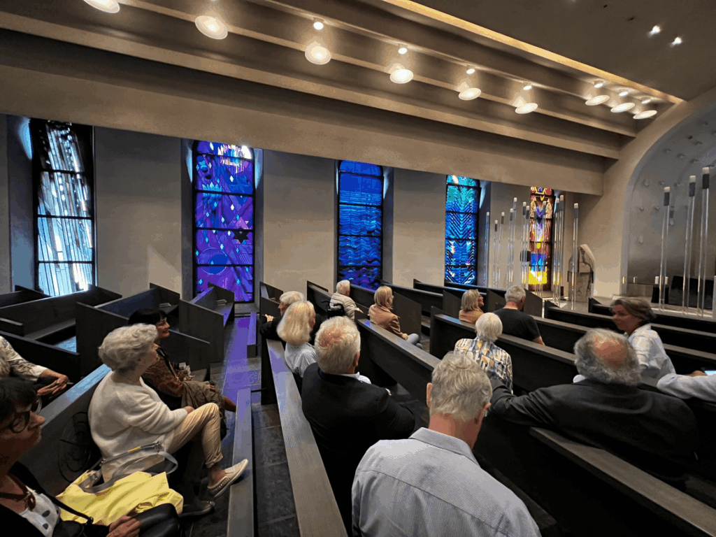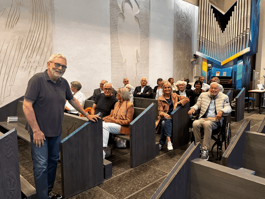Heinz Mack, bekannter ZERO-Gründer und Poet des Lichts, hat 1988 eine Kapelle gestaltet. Und Frank Herzbruch, Präsident des Lions-Clubs Düsseldorf Barbarossa im Lionsjahr 2023 / 2024, lud zu seinem Antritt zu einer Besichtigung ein.