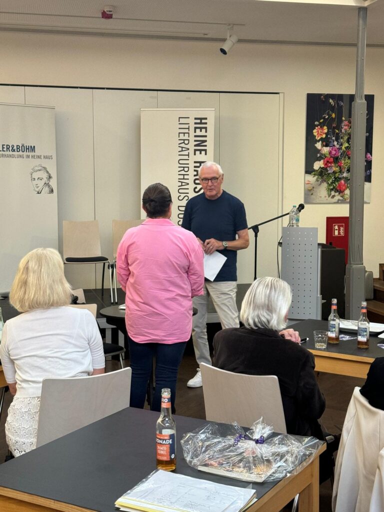 Und es folgte bei einem geschmackvollen Buffet, begleitet von Getränken nach Wunsch – gemäß Heine auch Wein und Sekt – ein sehr unterhaltsamer und stimmungsvoller Abend im Geburtshaus von Heine. Welch eine ‚Location‘!!
