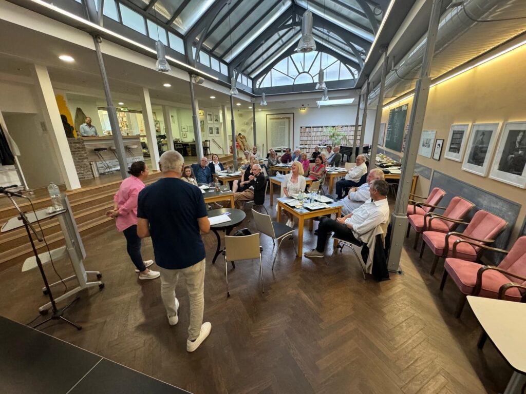 Helmut, der inzwischen pensionierte frühere Creative Director der BBDO, war mit seiner Antrittsrede zum neuen Präsidenten unseres Clubs für ein Jahr ab Juli 2024 in seinem beruflichen Element: stimmungsvoll, rhetorisch und inhaltlich in sich schlüssig in dem Bogen von Heine und dessen Werte zu denen von Lions seit Gründung 1917. Zahlreich erschienen, waren wir alle beeindruckt, was in langem, geklatschtem Beifall seinen Ausdruck fand.